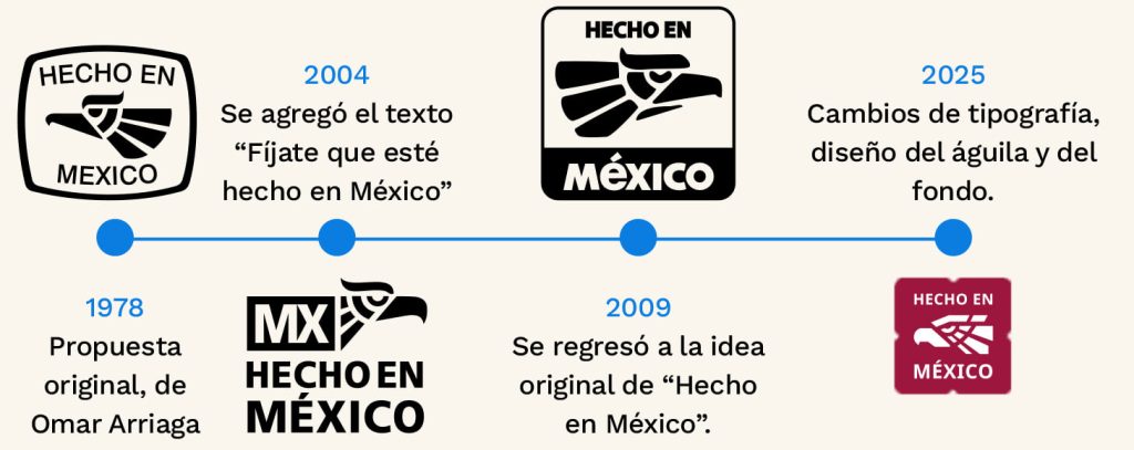 A lo largo del tiempo, el logotipo “Hecho en México” ha experimentado diversas transformaciones.